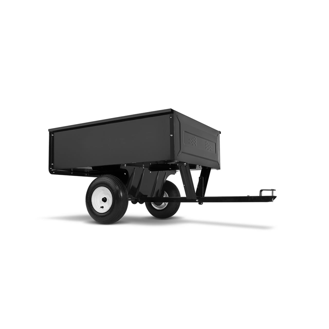 Kippbarer Anhänger mit Heckklappe für einfaches Be- und Entladen. Die Ladefläche misst 108 x 82.5 x 30.5 cm und verfügt über eine Traglast von 150 kg.