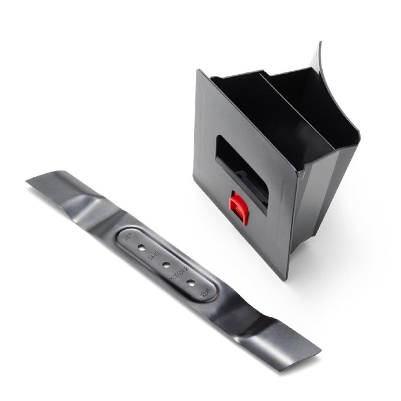 Zur Umwandlung in den BioClip (Mulch) Schneidmodus. Mit diesem Kit wird das Gras in kleine Stücke geschnitten, die sich schnell zersetzen und als Dünger für den Rasen dienen. Das Kit enthält BioClip Stecker und Klinge.